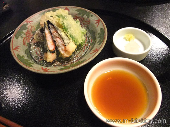 蟹の脚から取った感じの身をいくつか合わせて、海苔で挟んで揚げてあります。混ぜ物無し、まごう事なき蟹身の天ぷら!! ボリューム感があって、蟹の旨味を堪能できました。